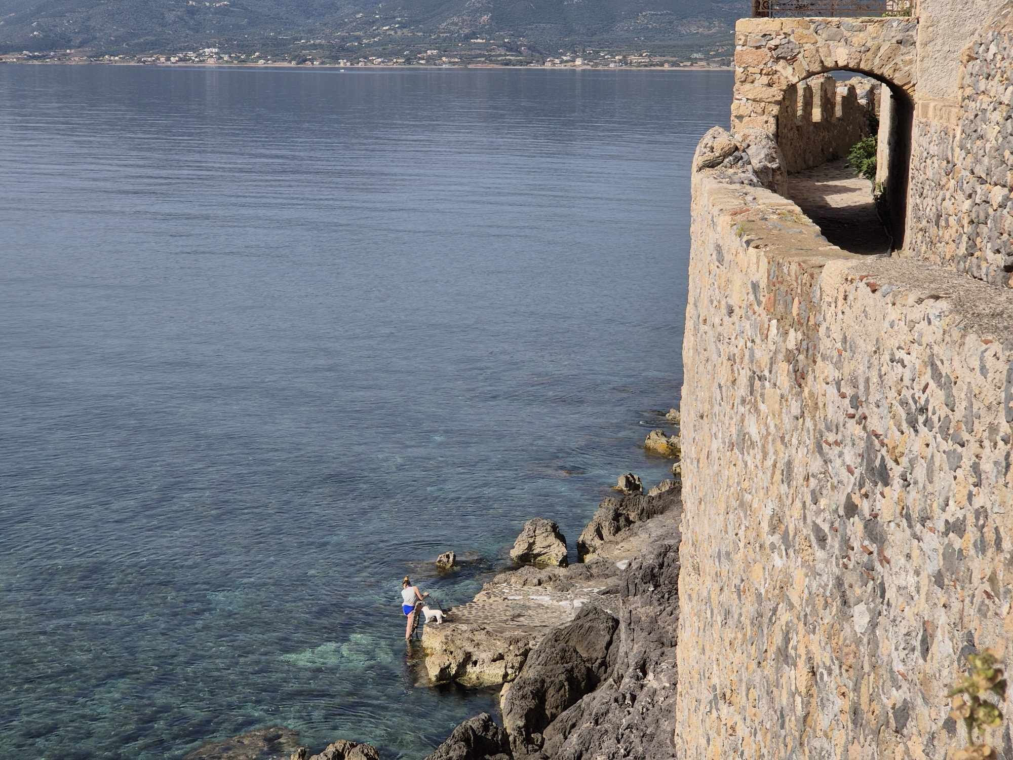 Κολύμπι στο Πορτέλλο στην παραλία του κάστρου δίπλα απο τα τείχη