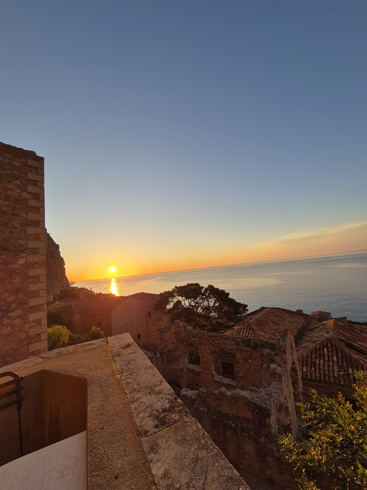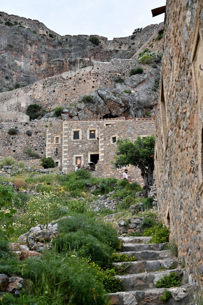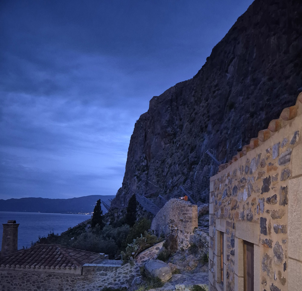 MonoLithos Inn is perched at the highest point of the Lower Town settlement within the Castle of Monemvasia, right where the famous “Voltes” begin—the grand, winding cobbled path that connects the Lower with the Upper Town of the Castle.