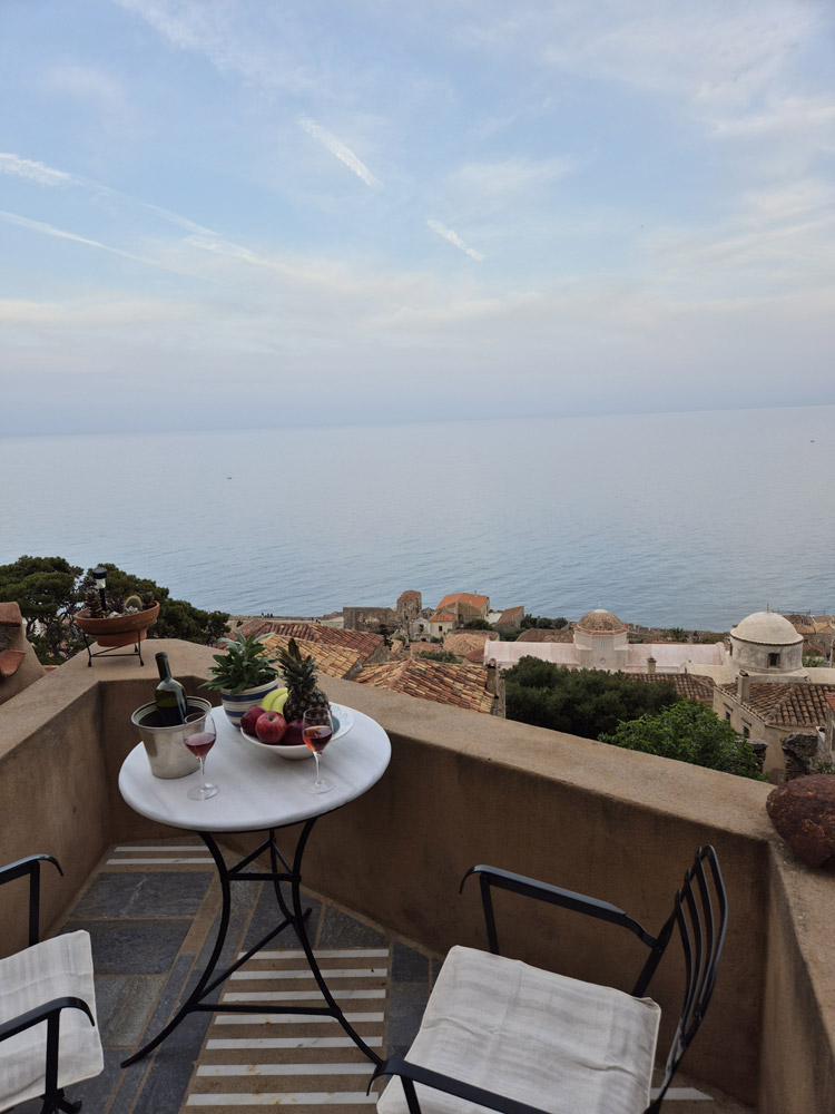 Thanks to its location and orientation, all of our rooms—with their private balconies—offer a unique, uninterrupted view of the endless blue of the Myrtoan Sea, a panoramic vista of the entire Lower Town, the Castle Walls, and the dramatic, imposing Rock crowned with the ruins of the Upper Town.